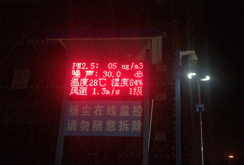 安全文明施工--揚塵管理:噪聲、PM值、溫度系統、揚塵污染數值與政府職能部門聯網,實時檢測。