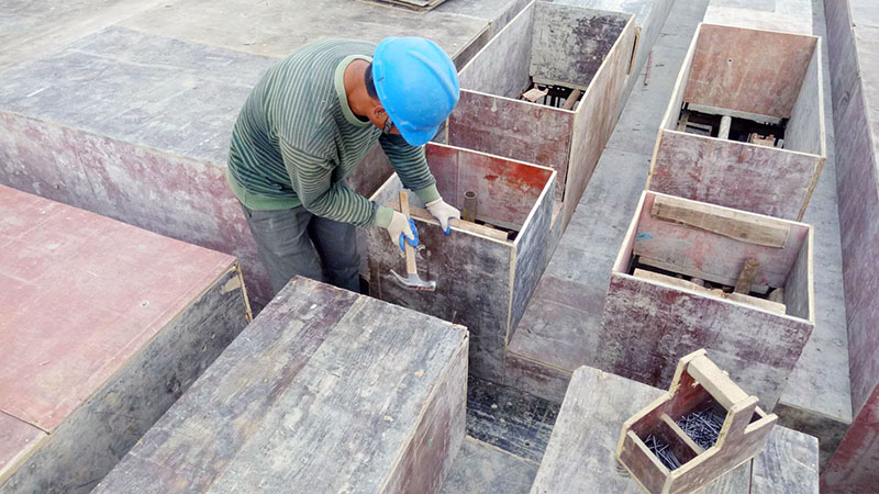 6點10分,筆者和張師傅走進工地的人貨電梯,來到28層他工作的地方,木工工具錘“叮咚”的聲音四處飄散開來,仿若一首動聽的打擊樂。